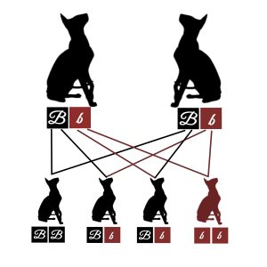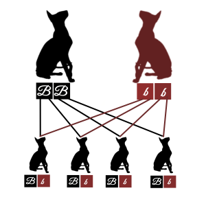 Ein Elternteil ist reinerbig Dominant (BB =schwarz), das andere reinerbig rezessiv (bb =chocolate)