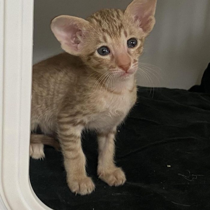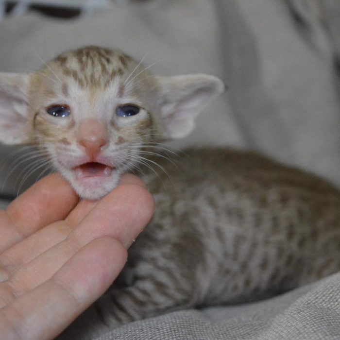 Yuma ist cinnamon spotted tabby (A/a bl/bl D/d Sp/sp Mc/mc)